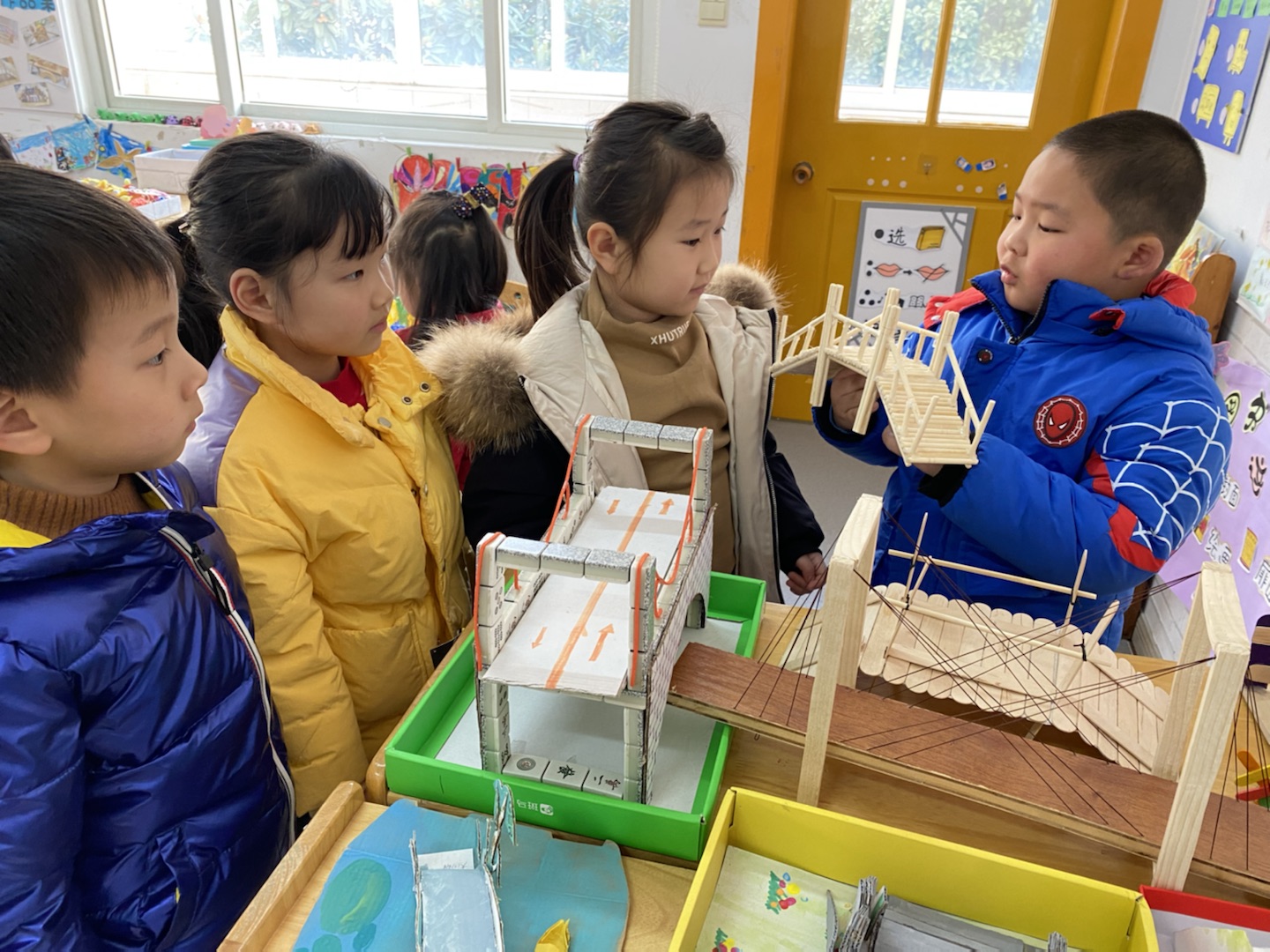 “桥”是最富有美感的建筑物,也是最能入诗的建筑物,桥不仅跨越空间,也跨越时间。近日,苏州市曹家巷大二班的小朋友都带来了自己在家与爸爸妈妈一起制作的桥,来给小伙伴们介绍呢!孩子们争先恐后地参观其他小朋友制作的手工桥。一个小朋友说“这是用筷子做成的桥,可真漂亮。”也有的说“这个桥竟然是麻将做成的,可真有创意。”……在小朋友们积累了相关桥的经验后,邀请家长一起参与孩子制作桥的过程中,既能让孩子们享受与爸爸妈妈一起交流、分享的乐趣,同时也能让家长直观地感受孩子的学习成果。