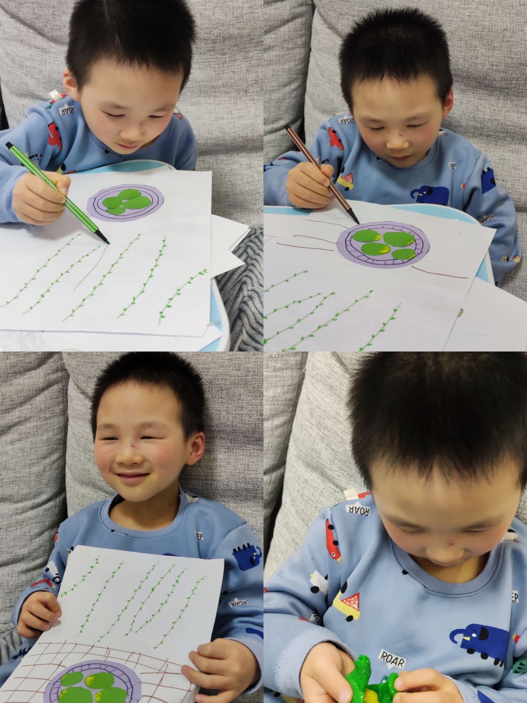 又是一年春草绿,又是一年清明时。清明节即将到来,苏州市曹家巷幼儿园中一班的老师们结合园本课程开展了“暖暖清明节,香香青团子”的主题活动,引导孩子们知道清明节是我国重要的传统节日,人们在清明时有着吃青团的风俗习惯。清明时节吃青团有着纪念先人、团圆的美好寓意。孩子们都对小巧、精致的青团十分喜爱,不仅品尝了青团的香甜,还用自己灵巧的小手画出了可爱的青团子,进行了手工活动,有的小朋友制作了青团剪贴画,还有的小朋友用粘土捏制了一个可爱的青团,一起来瞧瞧吧!