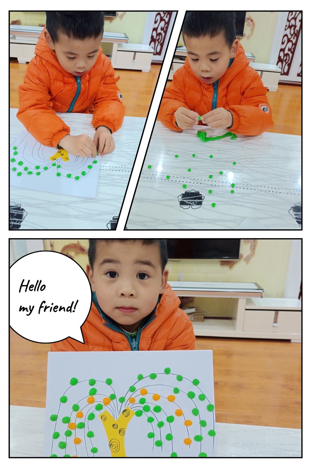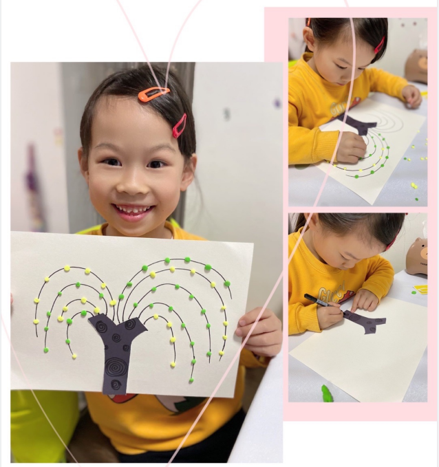 春姑娘迈着轻盈的步子来到了人间,当她来到河岸边,只见杨柳依依,柳树长出了嫩嫩的柳叶,那长长的柳枝在春风中微微摇摆,就像是一位柔美的少女在水边梳理着自己的秀发,太美啦!近日,苏州市曹家巷幼儿园中二班的孩子们开展了美工活动,用黏土、彩笔、彩纸制作柳树。孩子们在认识春天,感受春天美景的基础上,动手能力得到了发展,萌发出热爱春天的情感。