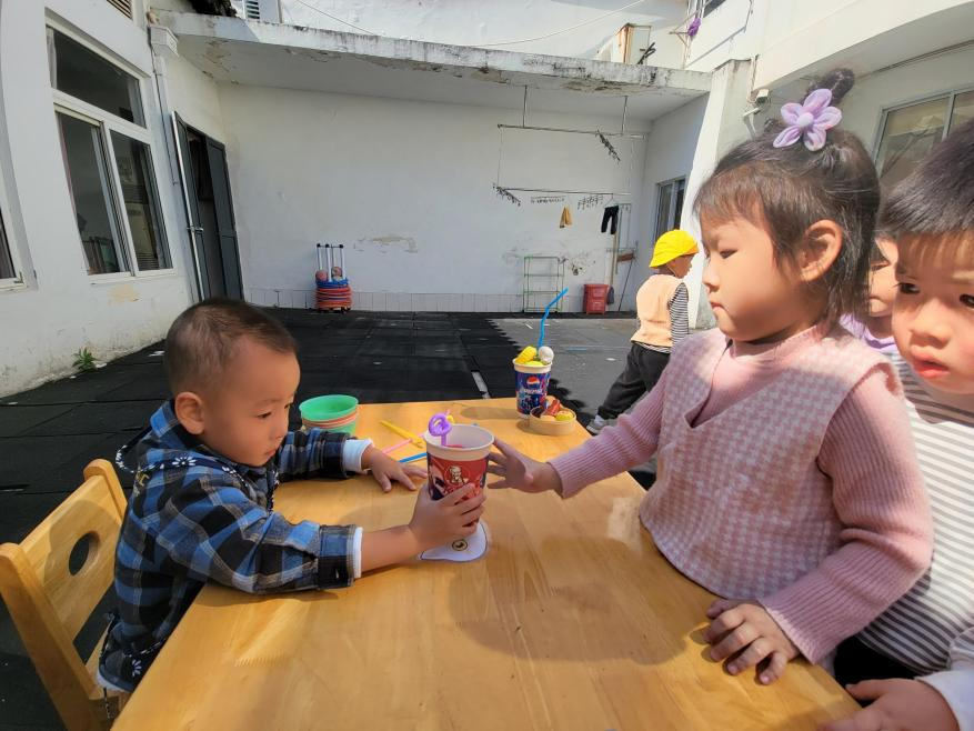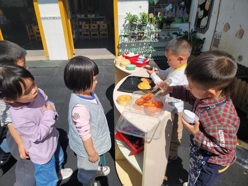 近日,苏州市曹家巷幼儿园小一班的孩子们在活动开始后就来到操场,带着兴奋与欢愉,开心、快乐地进行游戏。瞧,他们有的在小吃店里扮演老板,正在给客人准备食物;有的扮演客人,排着队等待买东西;还有的在水果店里当店员,为买水果的客人提供鲜榨果汁……在这种和谐的气氛中,幼儿自地地、愉快地玩自己感兴趣的游戏,同时,他们的创造能力和解决问题的能力也得到了发展。