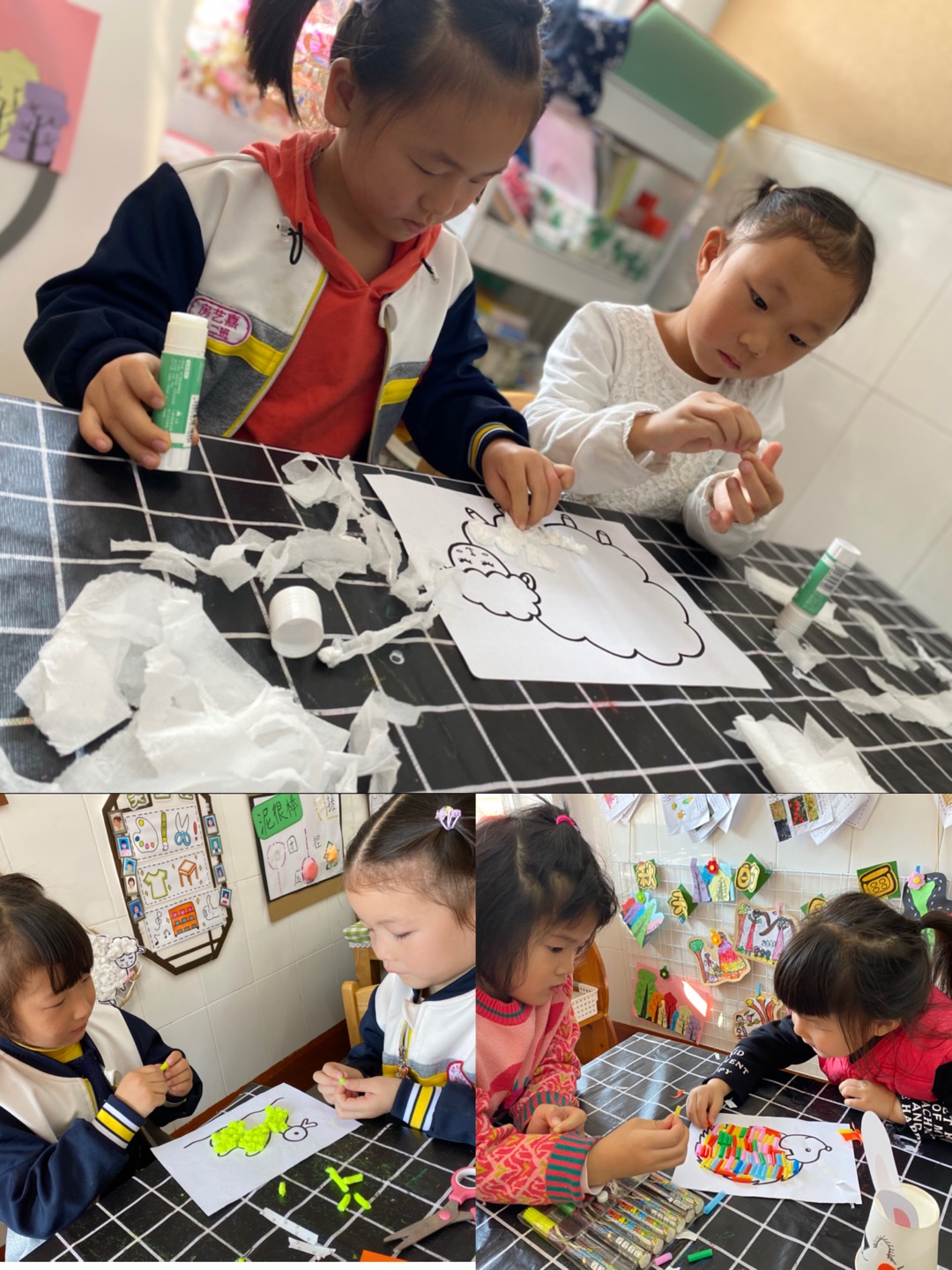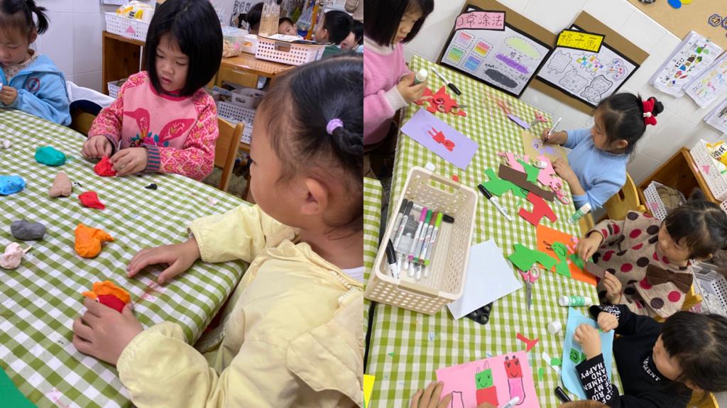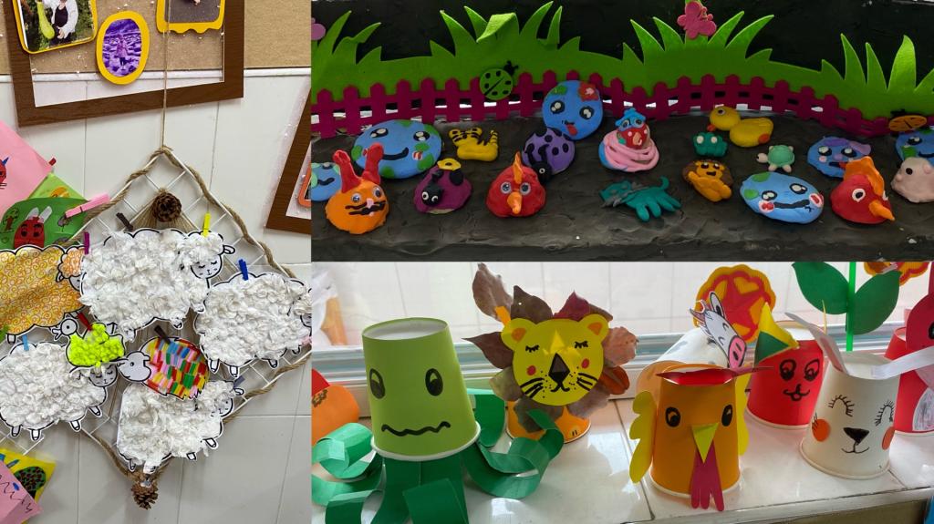 可爱的动物常常会受到幼儿们的喜爱,为了让他们感受神奇的动物世界,发展他们的动手能力和创造力,近日,苏州市曹家巷幼儿园中二班的小朋友们利用各种各样的材料制作手工小动物。孩子们有的将纸巾揉搓、变卷,当做绵羊毛,有的用吸管、毛根当做刺猬的背刺;还有的利用超轻粘土、纸杯等材料制作小动物。制作完成后他们还自发地将作品布置在班级的各个角落进行展示。幼儿们通过画、剪、拼、捏、揉等各种不同的制作方法,制作出自己喜欢的小动物,积极主动地参与到活动中。幼儿们在活动中体验乐趣,发展技能,他们的想象力、艺术表现力和创造力得到了发展。