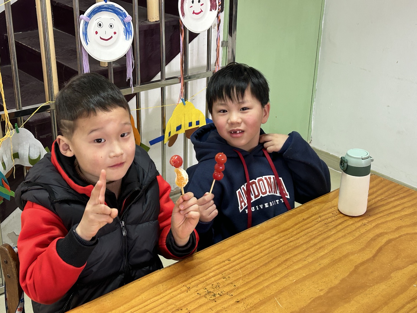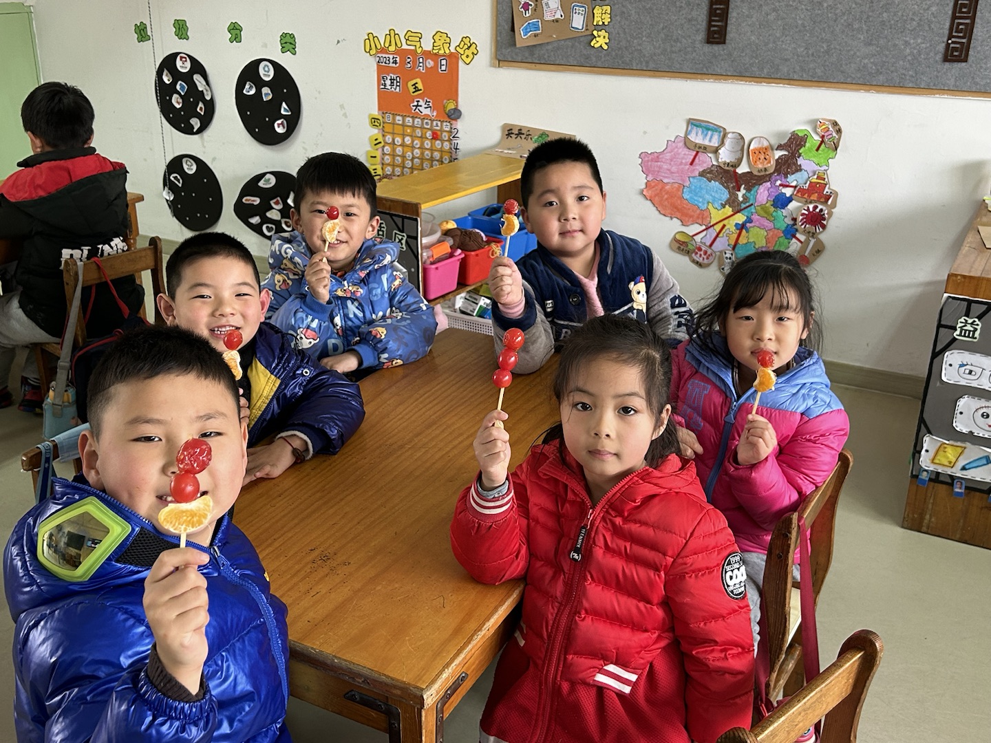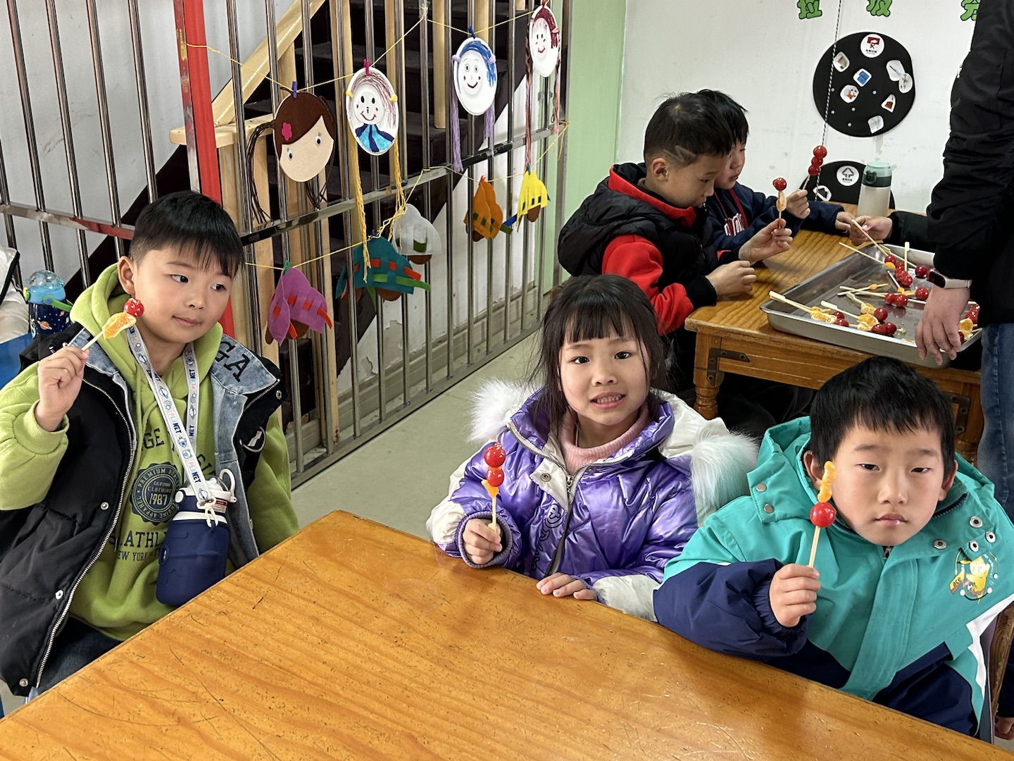 冰糖葫芦是中国传统小吃之一,它的味道酸甜可口,惹人喜爱,不仅好吃也很好看,一颗颗水果串在竹签上,外面裹上一层晶莹剔透的糖衣,仿佛为它穿上一件薄纱,煞是诱人。为了帮助幼儿了解中国传统文化,品尝到酸甜可口的冰糖葫芦,锻炼了幼儿的动手能力,让幼儿体验冰糖葫芦的制作过程,近日,姑苏区教体文旅委下属苏州市曹家巷幼儿园大六班特此开展了以“品春日甜蜜,串趣味童年”为主题的自制冰糖葫芦实践活动。老师们把孩子们串好的糖葫芦放进熬好的糖浆里转一转,给它们穿上晶莹剔透的衣服,冷却一会,美味的冰糖葫芦就制作完成了。“老师你尝尝我的吧!”“这是我自己做的冰糖葫芦。”孩子们开心地吃着冰糖葫芦,整个教室都弥漫着甜甜的味道。冰糖葫芦作为传统小吃,不仅有酸酸甜甜的美味,也能让孩子们感受到中国文化的传承和幸福的童年生活。通过这次活动,孩子们提高了自己的动手能力,学会了分享与珍惜,希望我们的孩子们和家长们的生活都像冰糖葫芦一样,甜甜美美,幸福圆满。